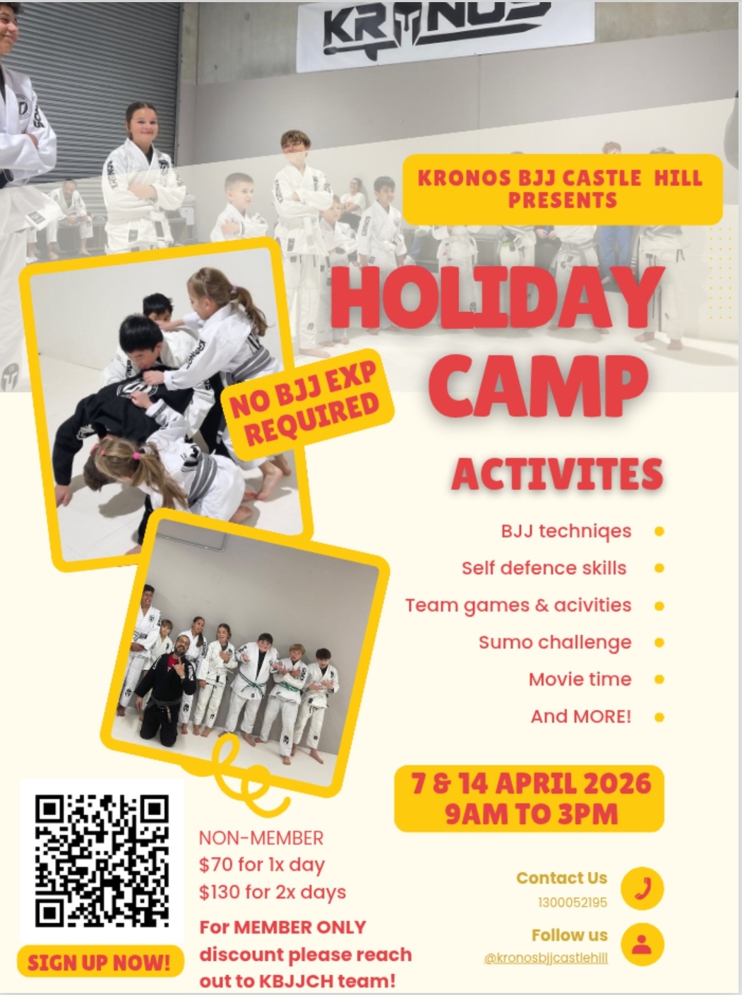 April Holiday Camp at Kronos BJJ Castle Hill (7th & 14th Apr 9 am – 3 pm)