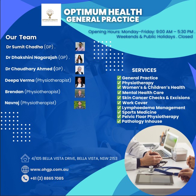 Optimum Health General Practice — your local bulk-billing medical centre in Bella Vista, Norwest!