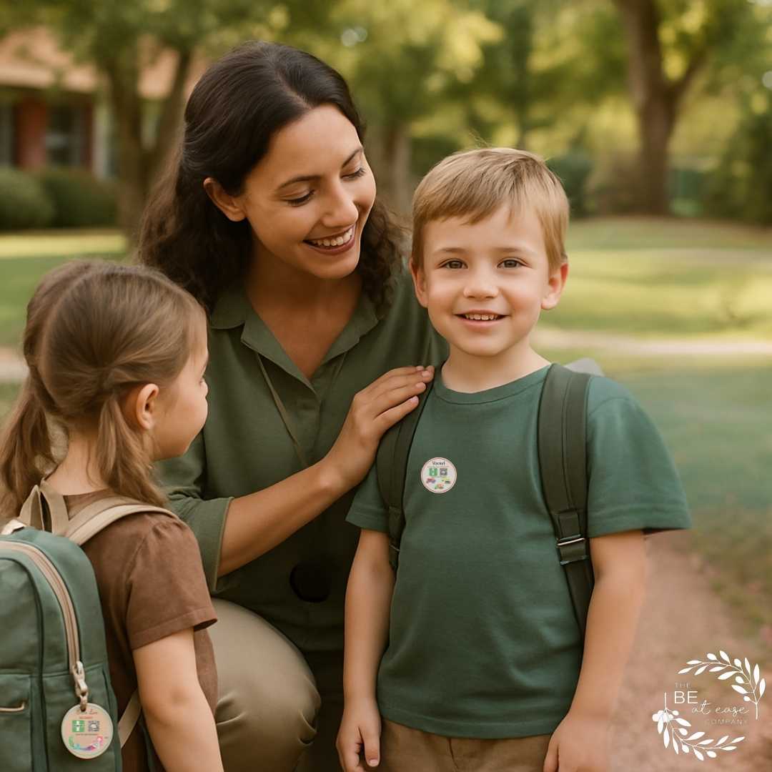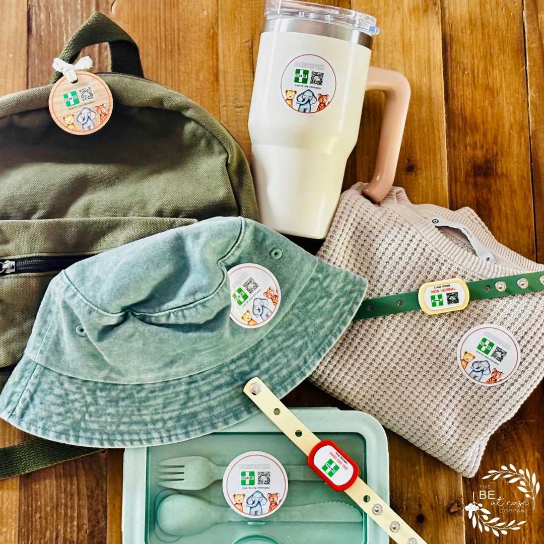 The BE at Ease Company creates simple, visible safety tools that help parents feel confident their child’s important information is easy to find in any situation.