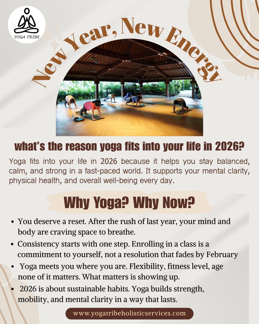 YogaTribe Holistic Services was founded to support community wellness through accessible platforms for connection and healing, our mission is to empower individuals with tools for physical, mental, and emotional wellbeing.