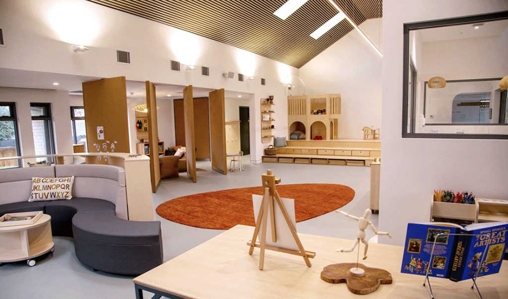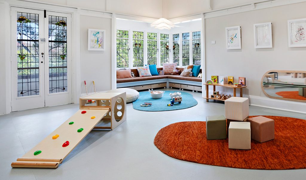 The babies and toddlers’ rooms are located within the original 1920s home, which has been superbly renovated to create a nurturing, calm and homely environment. It’s the perfect setting for young children who are starting childcare for the first time — offering comfort, familiarity and a genuine sense of belonging. The original features, including restored fireplaces and beautiful stained-glass windows, add a touch of heritage warmth that complements the centre’s modern learning facilities.