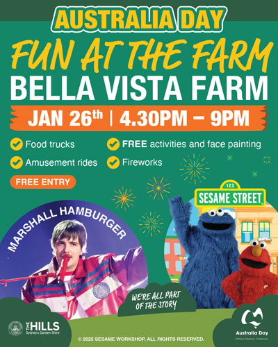 Then, The Hills Shire’s blockbuster event, Fun at the Farm, will kick off from 4:30pm at Bella Vista Farm with performances from 2025 Australian Idol Winner Marshall Hamburger, Sesame Street characters, and crowd favourites La Fiesta Sound System.