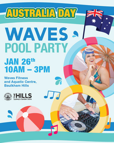 The day will kick off at Waves Fitness and Aquatic Centre, which will host its signature pool party from 10am – 3pm, featuring a live DJ, free sausage sizzle, and roving entertainment.