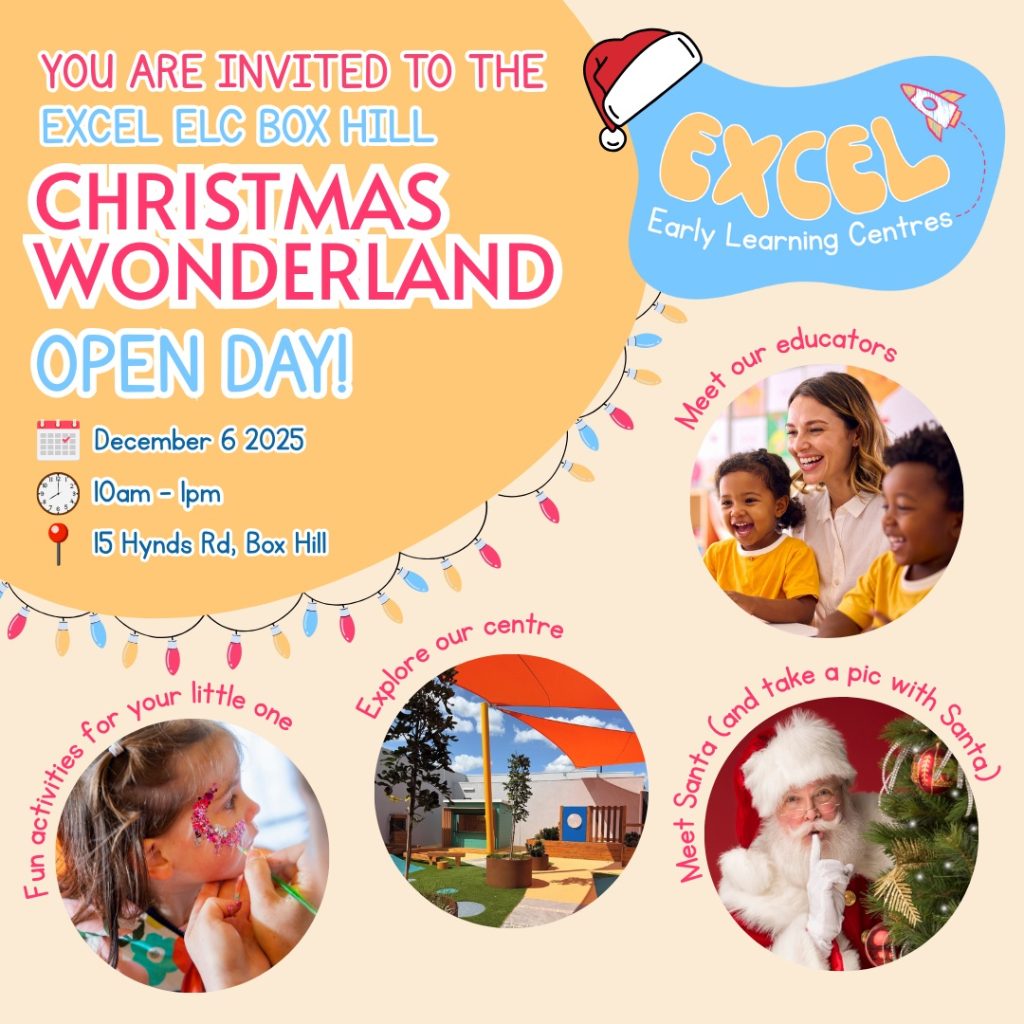 Click here to secure your FREE tickets: https://events.humanitix.com/excel-elc-box-hill-christmas-wonderland-open-day