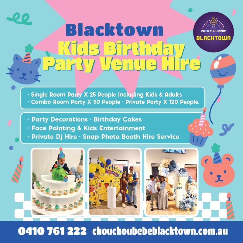 Planning a kids’ birthday party? Chouchoubebe Blacktown handles everything, from venue hire and decorations to face painting and entertainment! Just bring the guests – Chouchoubebe Blacktown will take care of the rest! Book your stress-free celebration today.
