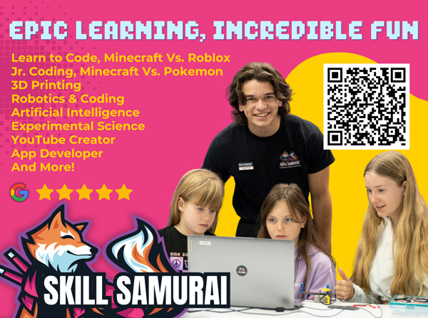 Looking for a school holiday camp that offers more than just childcare? Skill Samurai Holiday Camps give children the opportunity to do more than just play with technology – they create it. During the school holidays, participants can design games, build robots, experiment with science and explore their creativity in a fun, hands-on environment. Children may code their own game, bring a robot to life, create digital art or even learn how to launch their own YouTube channel. The camps combine creativity, problem-solving and future-ready skills in programs that children genuinely enjoy. Activities include: